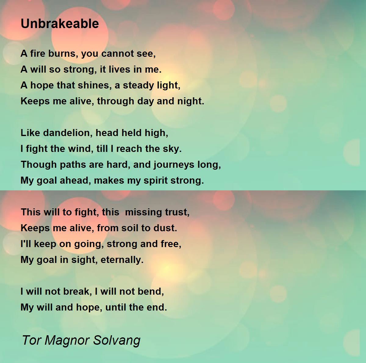 I will not break, I will not bend,