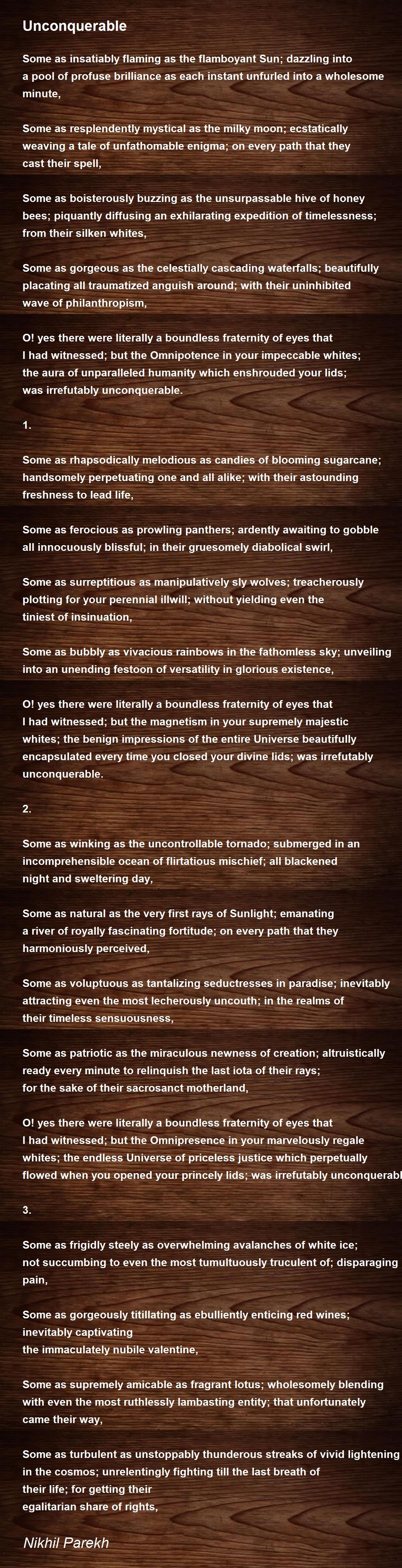 O! yes there were literally a boundless fraternity of eyes that I had witnessed; but the Omniscient religion of humanity in your fabulous whites; the immortality to live; procreate infinite new enthralling lives; and to let live in your meditating lids; was irrefutably unconquerable.
