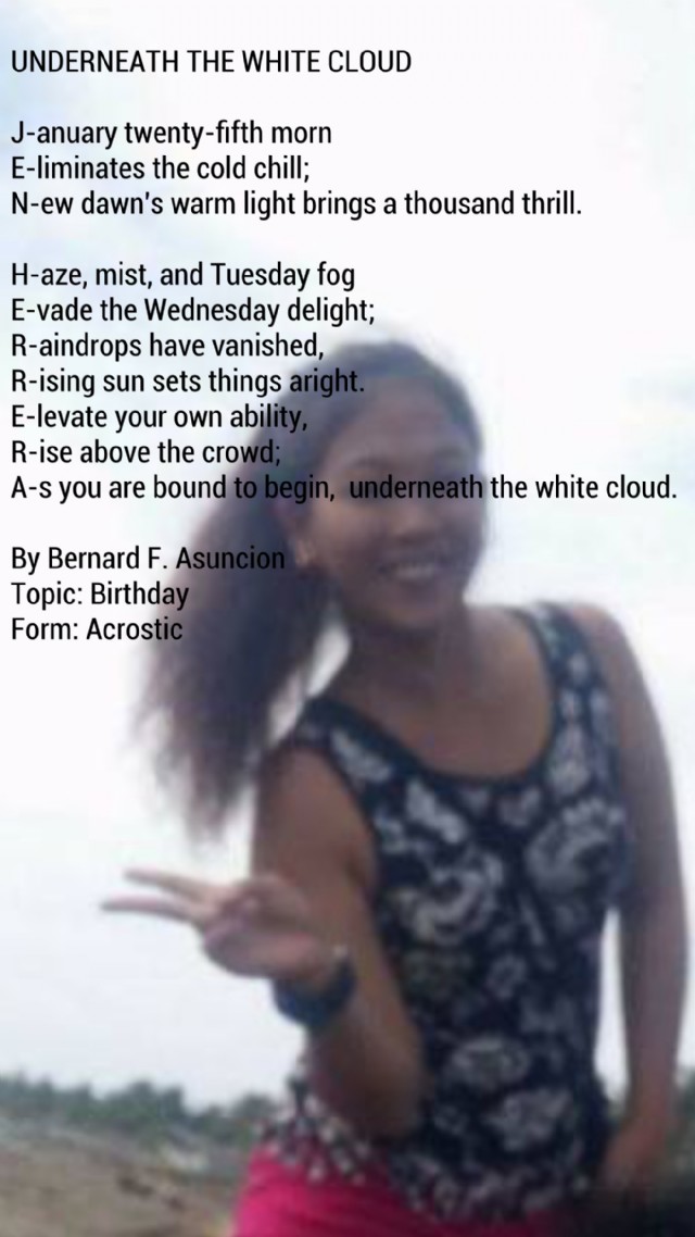 A-s you are bound to begin, underneath the white cloud.