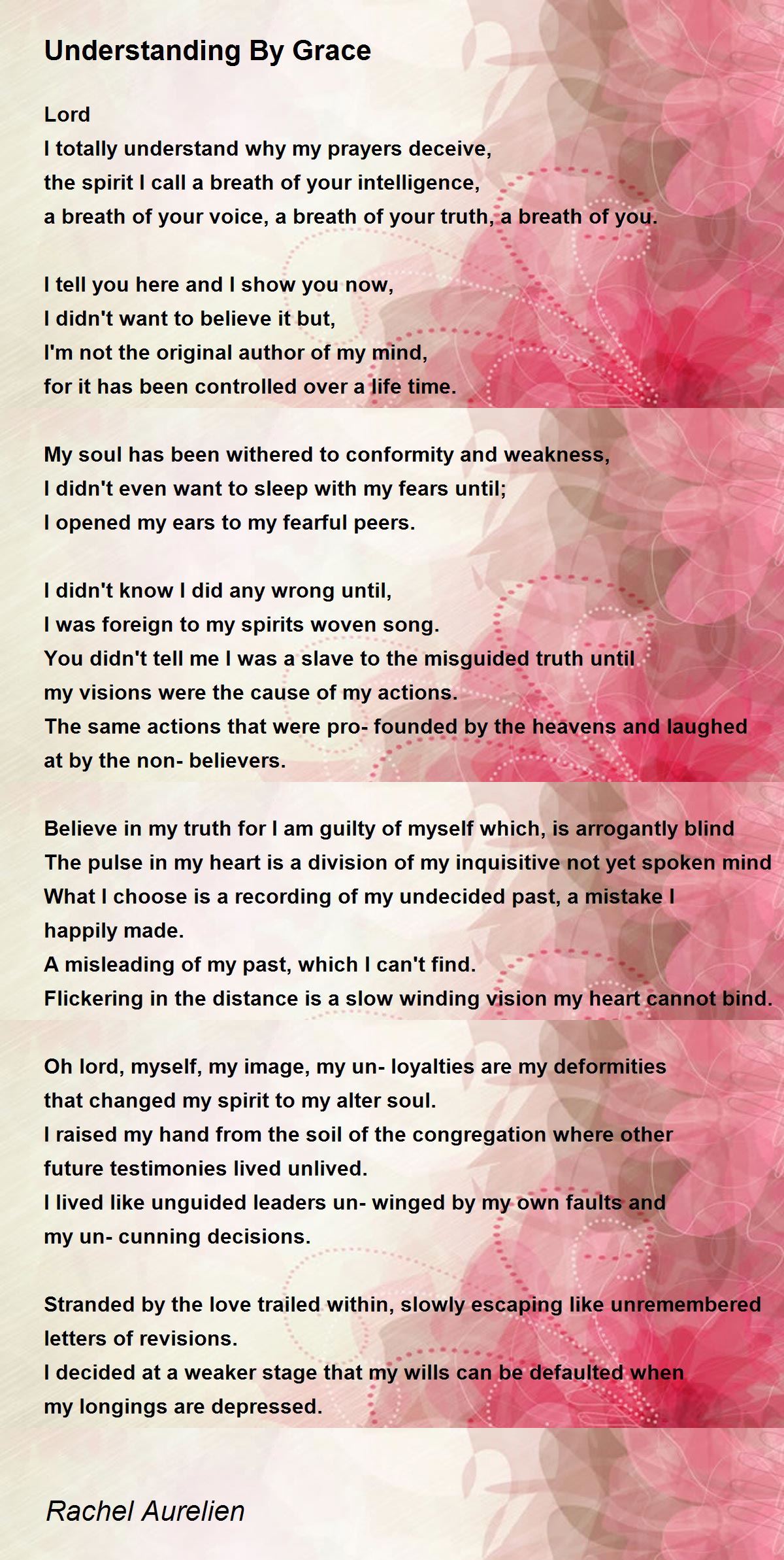 Oh lord, myself, my image, my un-loyalties are my deformities that changed my spirit to my alter soul.