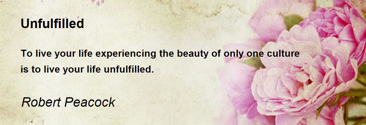 To live your life experiencing the beauty of only one culture is to live your life unfulfilled.