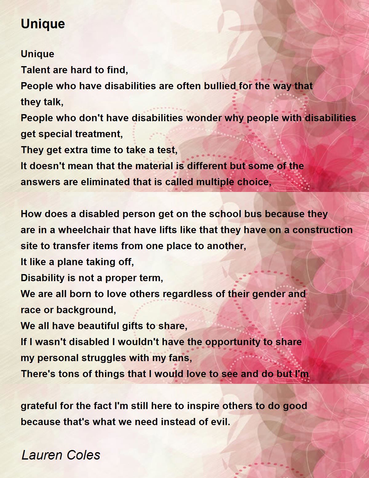 If I wasn't disabled I wouldn't have the opportunity to share my personal struggles with my fans,