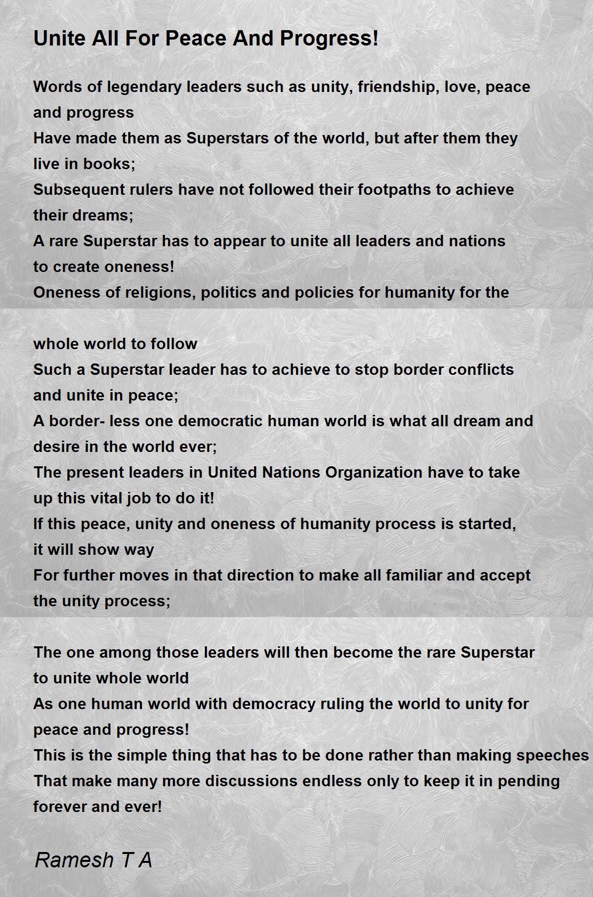 Words of legendary leaders such as unity, friendship, love, peace and progress