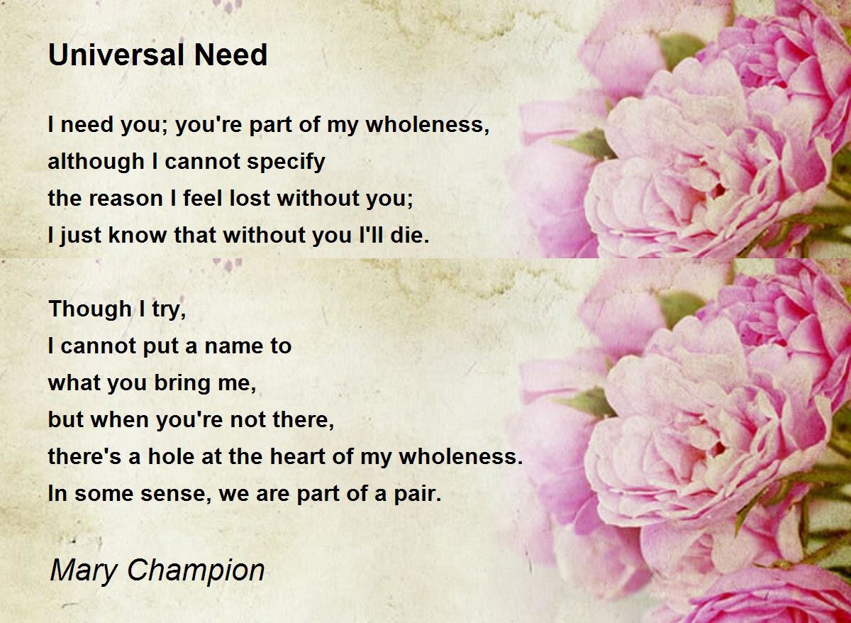 I need you; you're part of my wholeness,