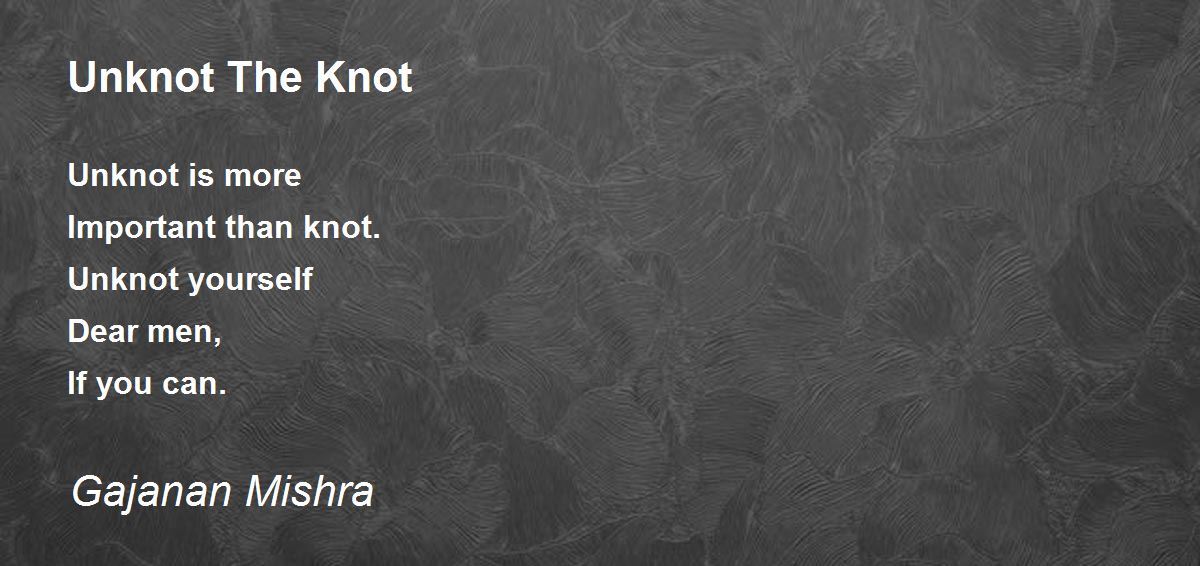 Unknot is more Important than knot. Unknot yourself Dear men, If you can.