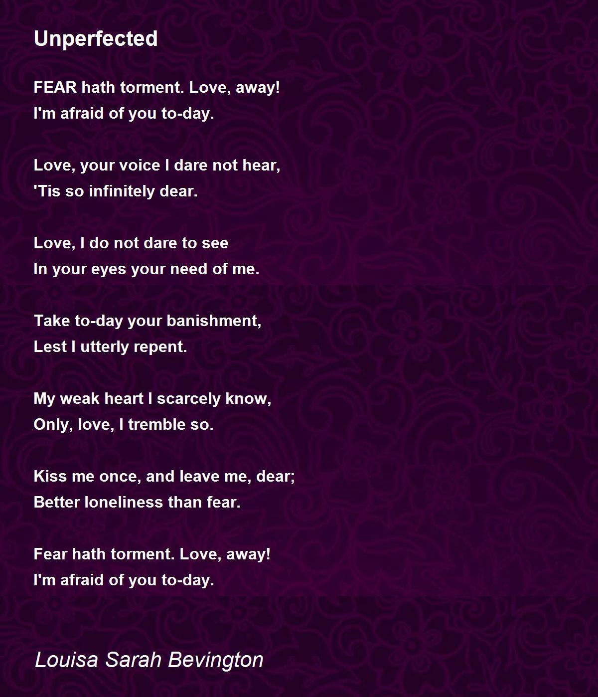 Fear hath torment. Love, away!