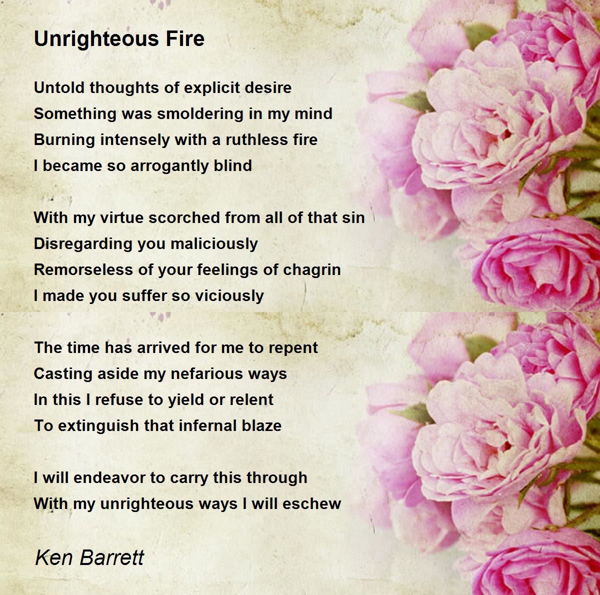 With my virtue scorched from all of that sin