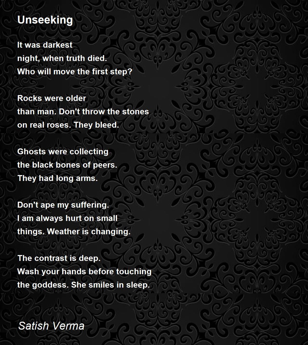 Dark and complex as your Quill tends to profusely bleed but the is born of the innerwirkings of a most creative Minds eye... Most mercurial you still be after all these years behind us... Behind old thoughts... Before the best to come... judgement hath no poetic justice, Satish...thus, we see our seeds with dragons teeth and God's good promise of all that's ripe in His Ever Garden, where I must believe that poetry doth exist.