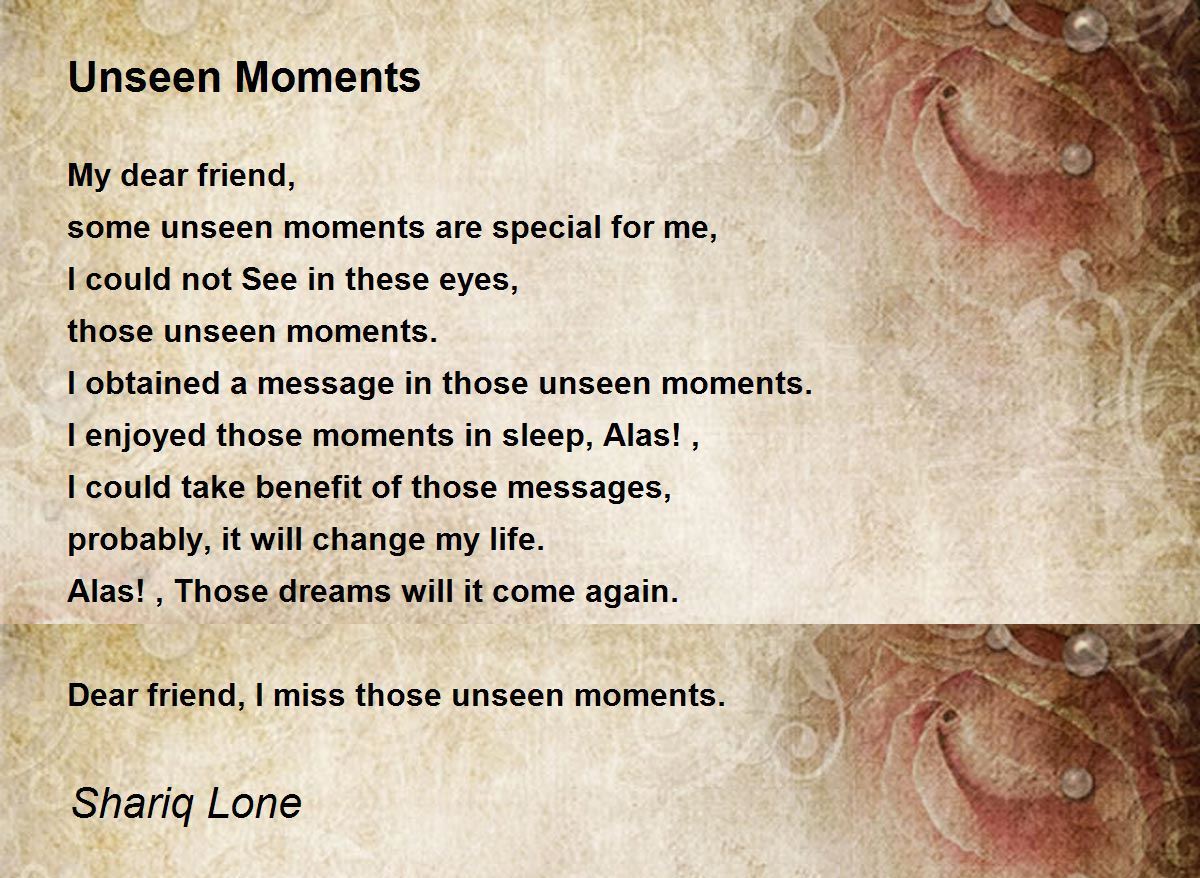 Unseen moments carry a world in them. If only we could grasp them. The nearest we come to them is when we are gazing into the eyes of a loved one. Well penned.