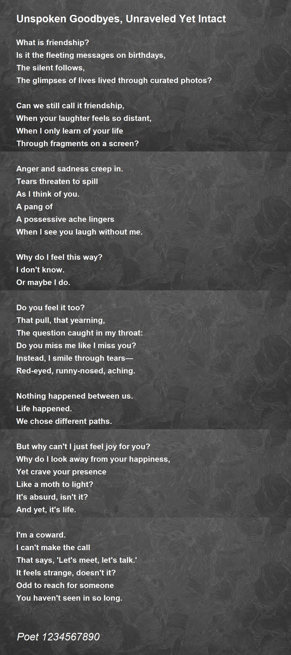 Tears spill when I see you with old friends,