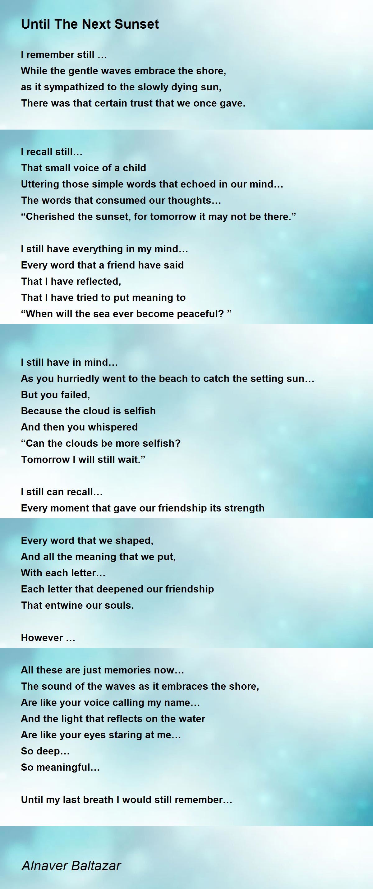 “Cherished the sunset, for tomorrow it may not be there.”