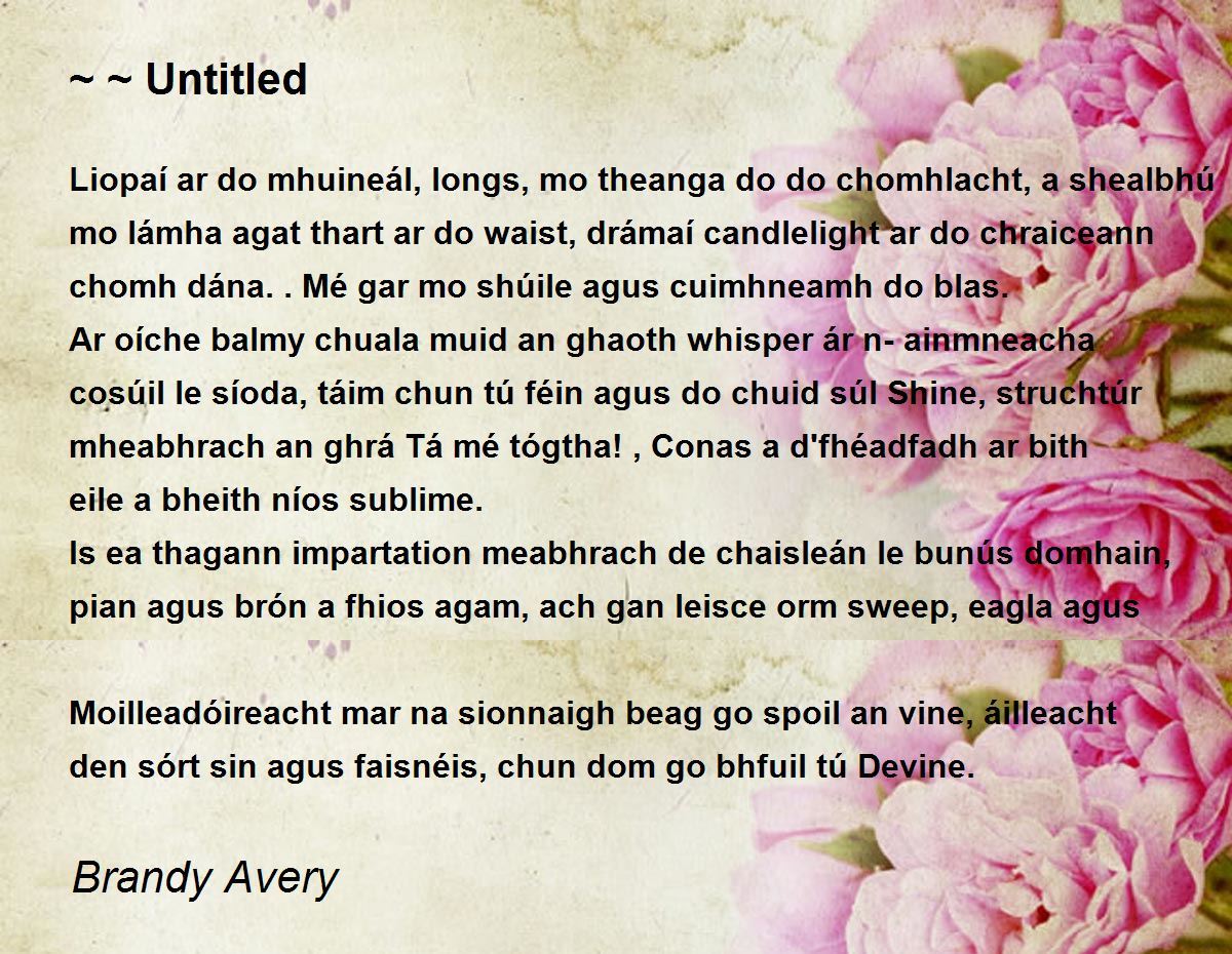 Ar oíche balmy chuala muid an ghaoth whisper ár n-ainmneacha cosúil le síoda, táim chun tú féin agus do chuid súl Shine, struchtúr mheabhrach an ghrá Tá mé tógtha! , Conas a d'fhéadfadh ar bith eile a bheith níos sublime.