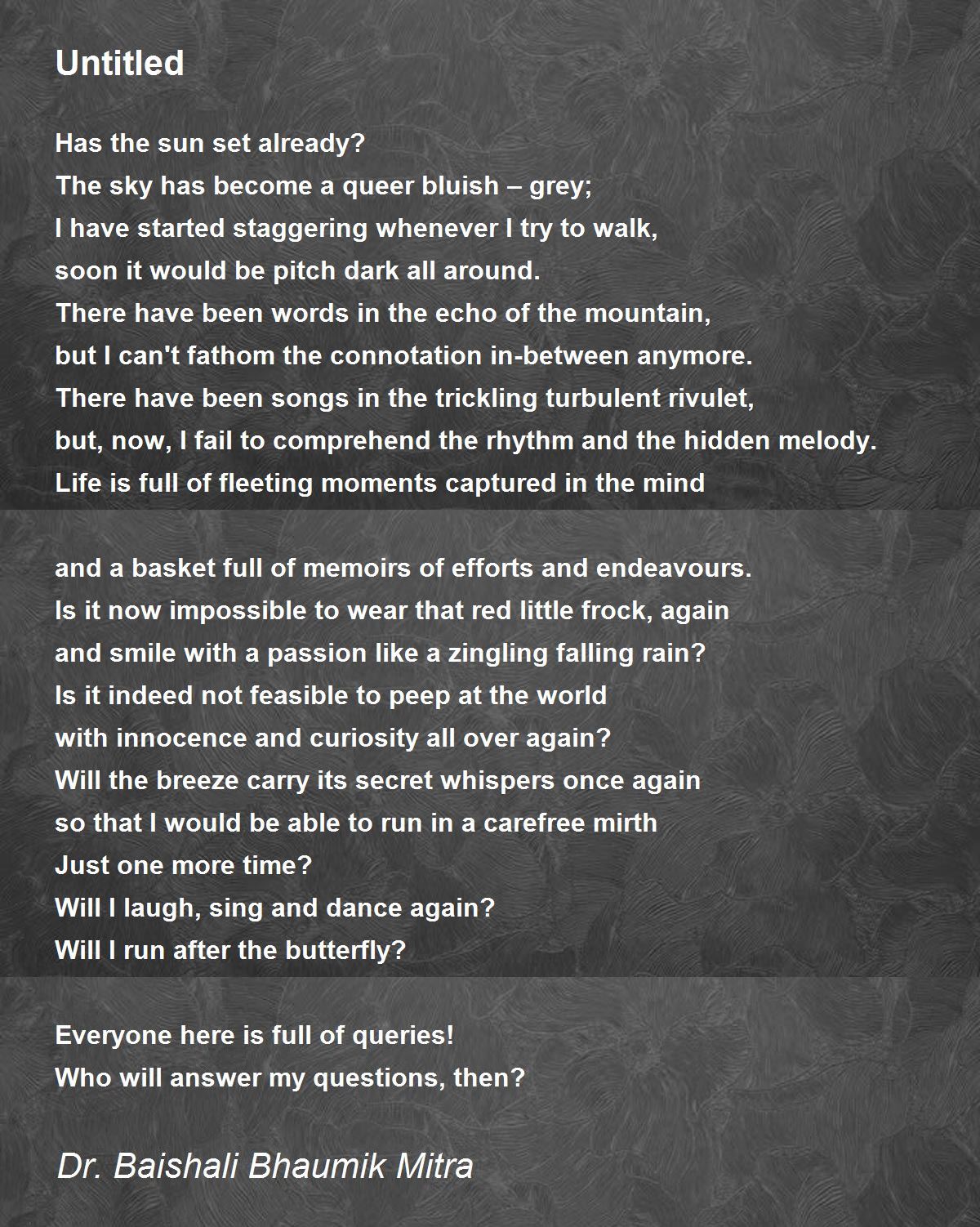 but, now, I fail to comprehend the rhythm and the hidden melody.