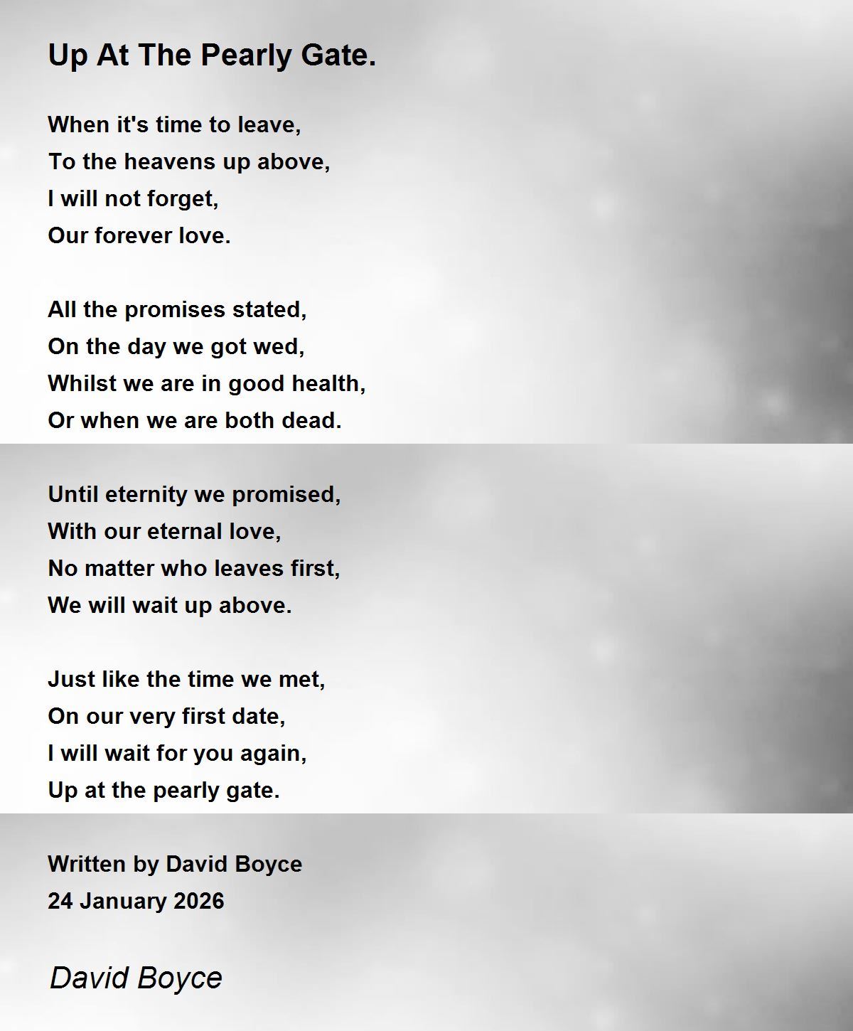 Up at the pearly gate.