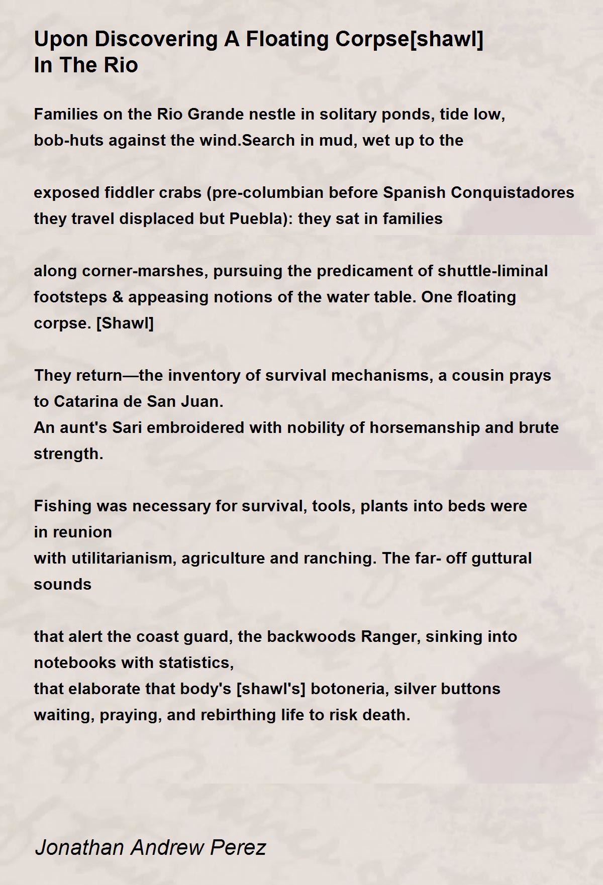 footsteps & appeasing notions of the water table. One floating corpse.[Shawl]