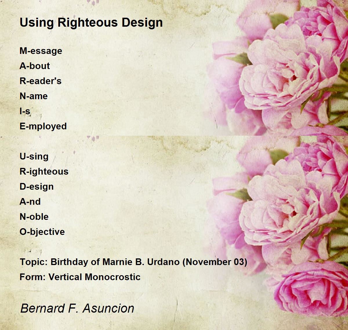 Topic: Birthday of Marnie B. Urdano (November 03)