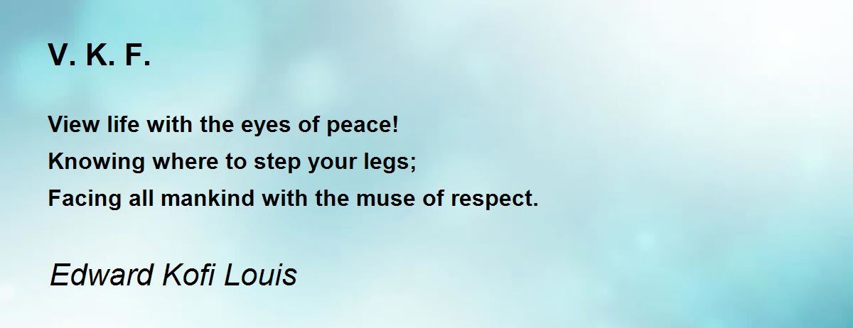 View life with the eyes of peace! Knowing where to step your legs; Facing all mankind with the muse of respect.