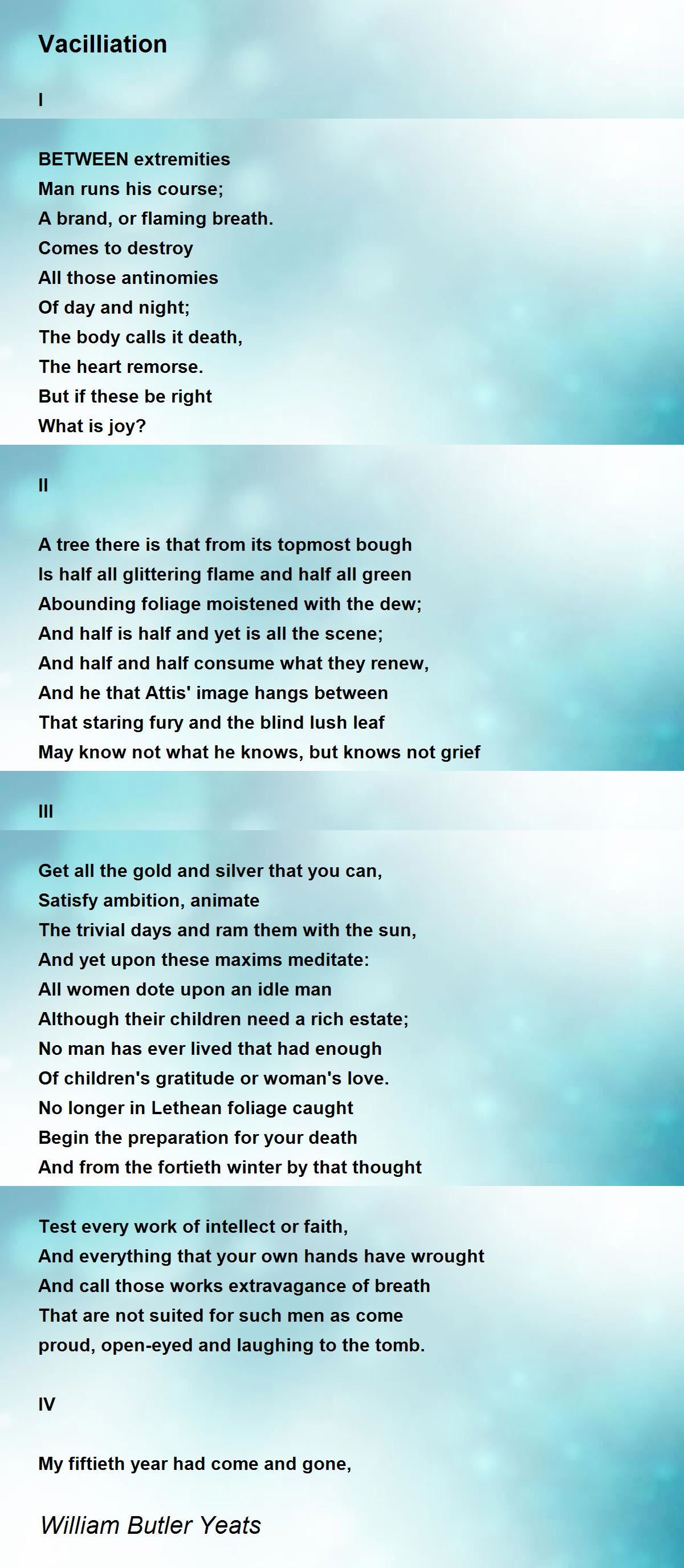 Comments about Vacilliation by William Butler Yeats