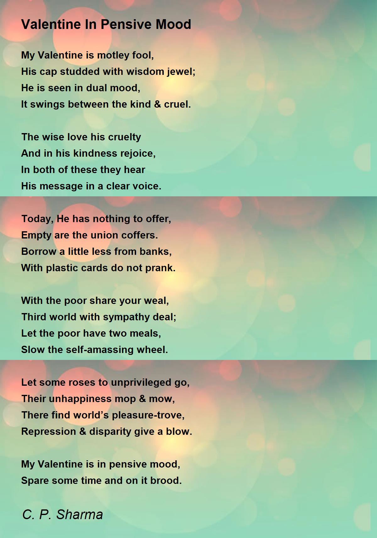 Great composition Sir. Nice rhymes...well written poem...valentine in a pensive mood..great! ...10