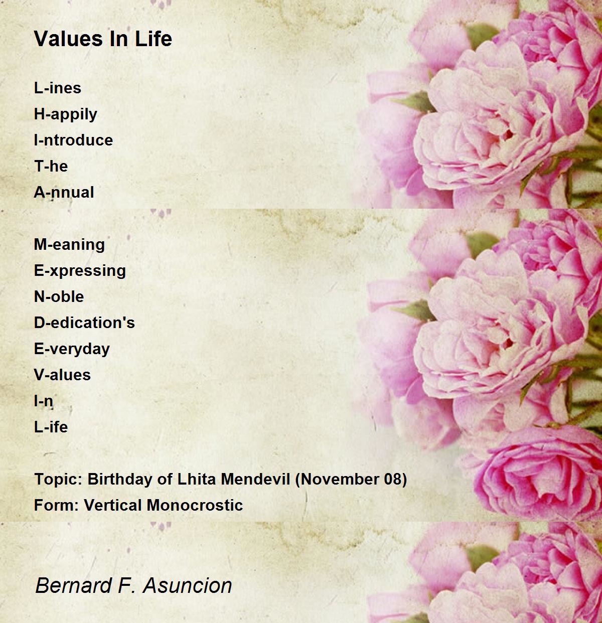 Topic: Birthday of Lhita Mendevil (November 08)