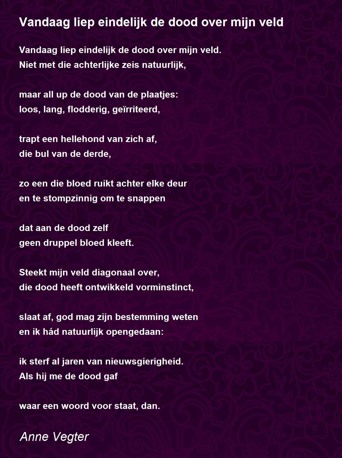 Vandaag liep eindelijk de dood over mijn veld.