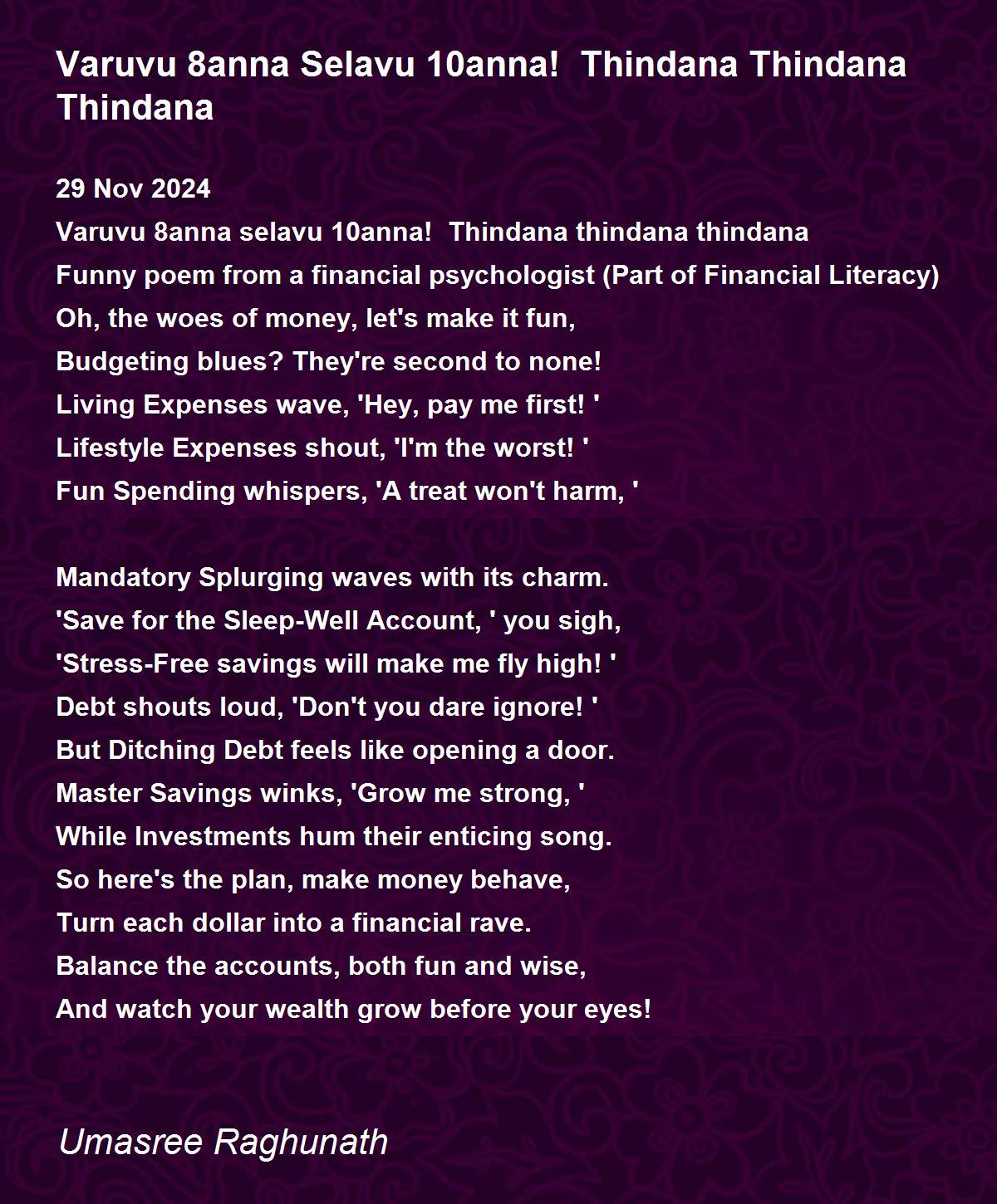 Funny poem from a financial psychologist (Part of Financial Literacy)