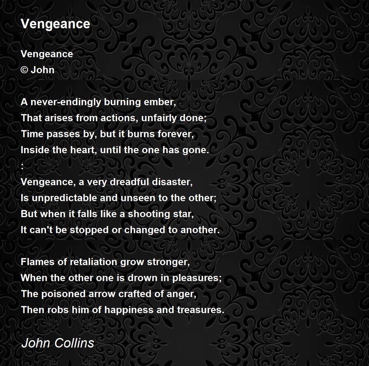 A great write that captures the painful effect of vengeance. Nicely presented.10