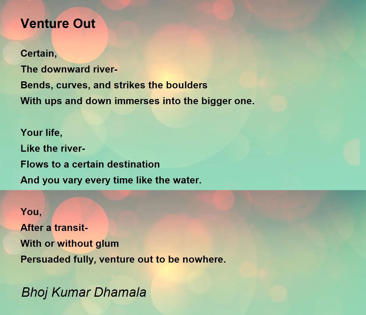 Persuaded fully, venture out to be nowhere.
