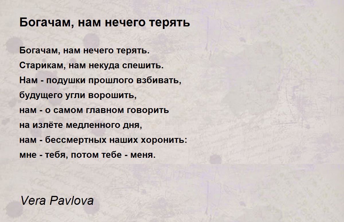 Богачам, нам нечего терять.