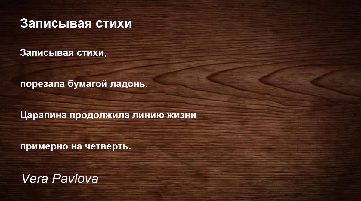 Записывая стихи, порезала бумагой ладонь. Царапина продолжила линию жизни примерно на четверть.