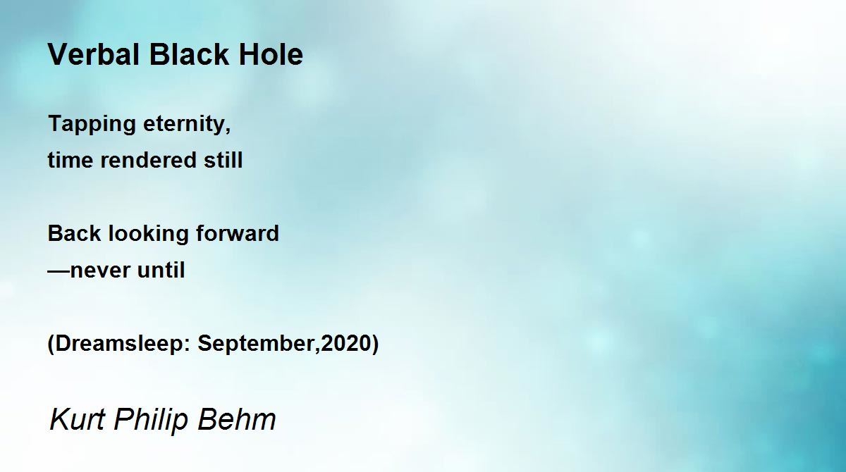 Tapping eternity, time rendered still Back looking forward —never until (Dreamsleep: September,2020)