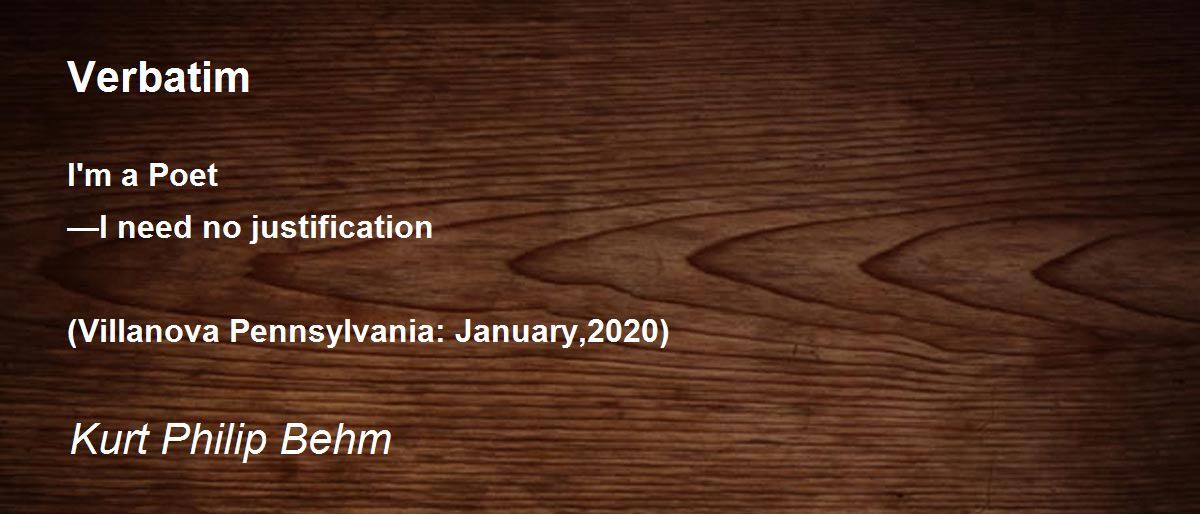 I'm a Poet —I need no justification (Villanova Pennsylvania: January,2020)