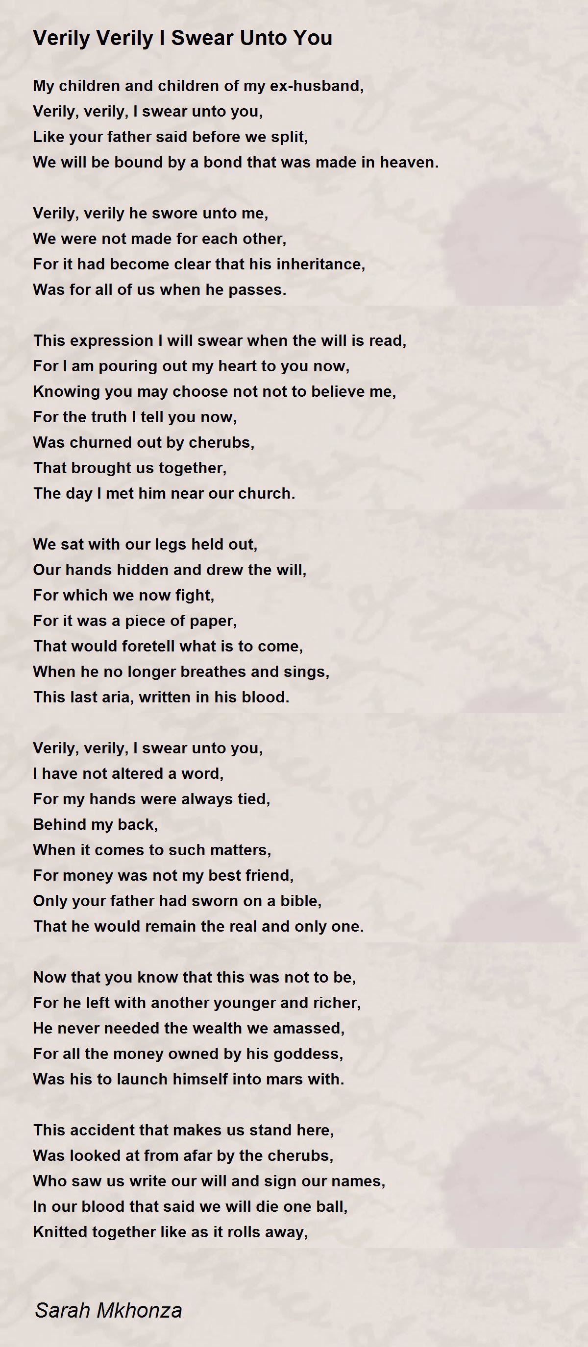 Verily, verily, I swear unto you,