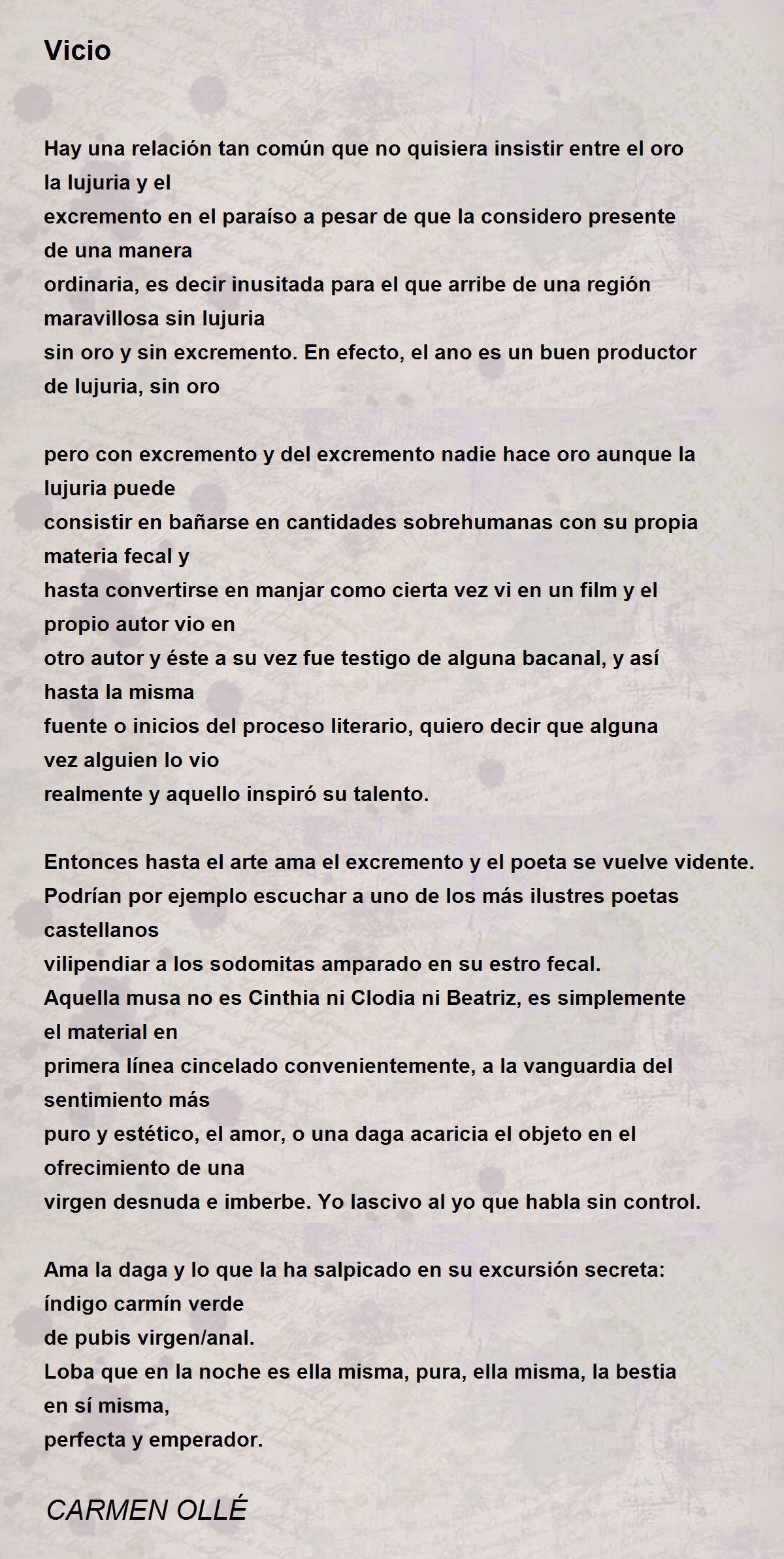 pero con excremento y del excremento nadie hace oro aunque la lujuria puede