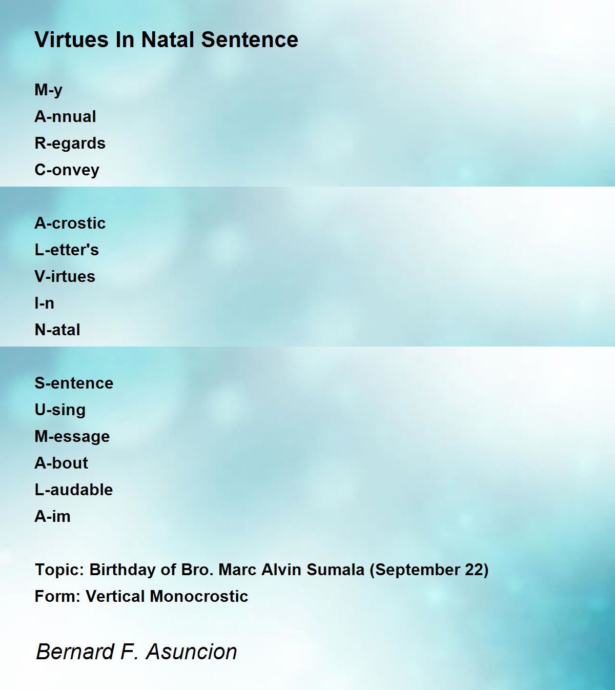 Topic: Birthday of Bro. Marc Alvin Sumala (September 22)
