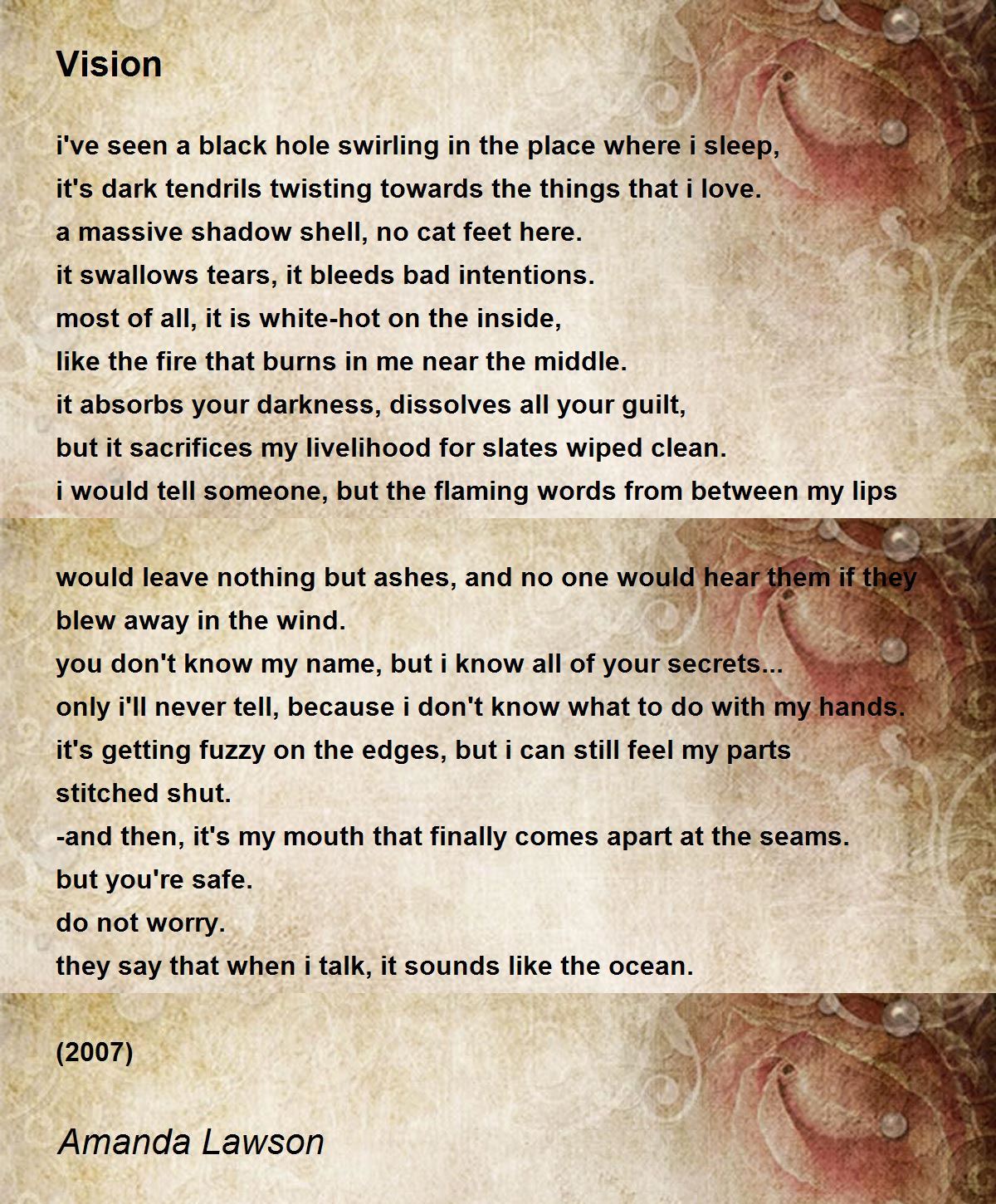 This poem grips me. The 'black hole swirling' and the 'dark rendrils twisting' terrify me. The line about your flaming words captures poetically the devestation words can sometimes bring. '...It sacrifices my livelihood for slates wiped cleaned...' is a particularly apt phrase. It seems too high a price to be paid. Thank you for the arresting words.