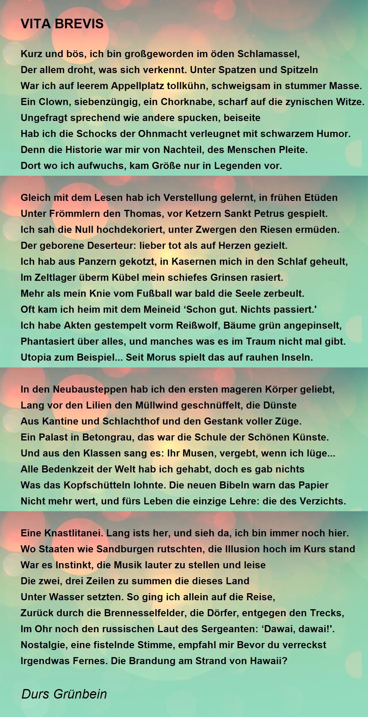 Denn die Historie war mir von Nachteil, des Menschen Pleite.