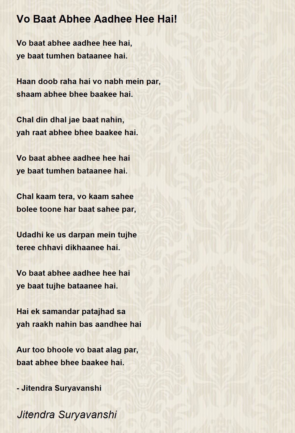 Vo baat abhee aadhee hee hai