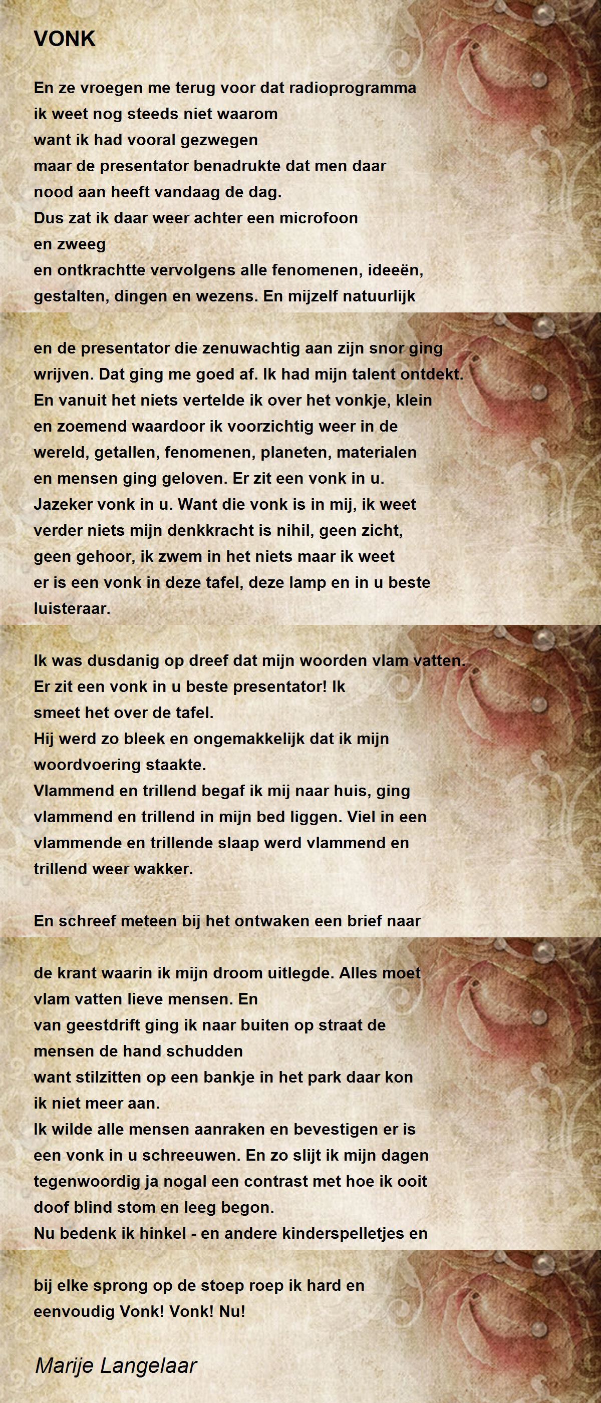Jazeker vonk in u. Want die vonk is in mij, ik weet