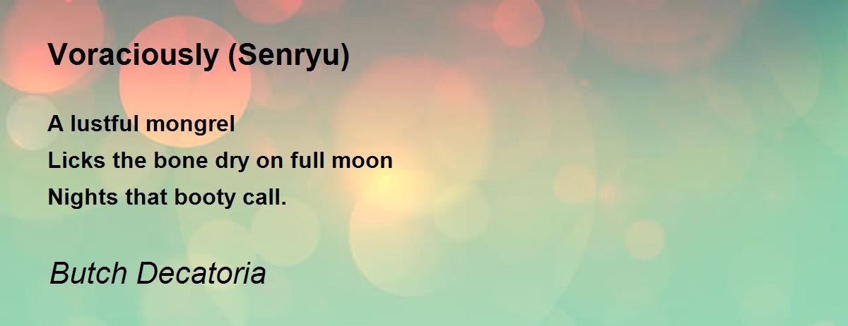 A lustful mongrel Licks the bone dry on full moon Nights that booty call.