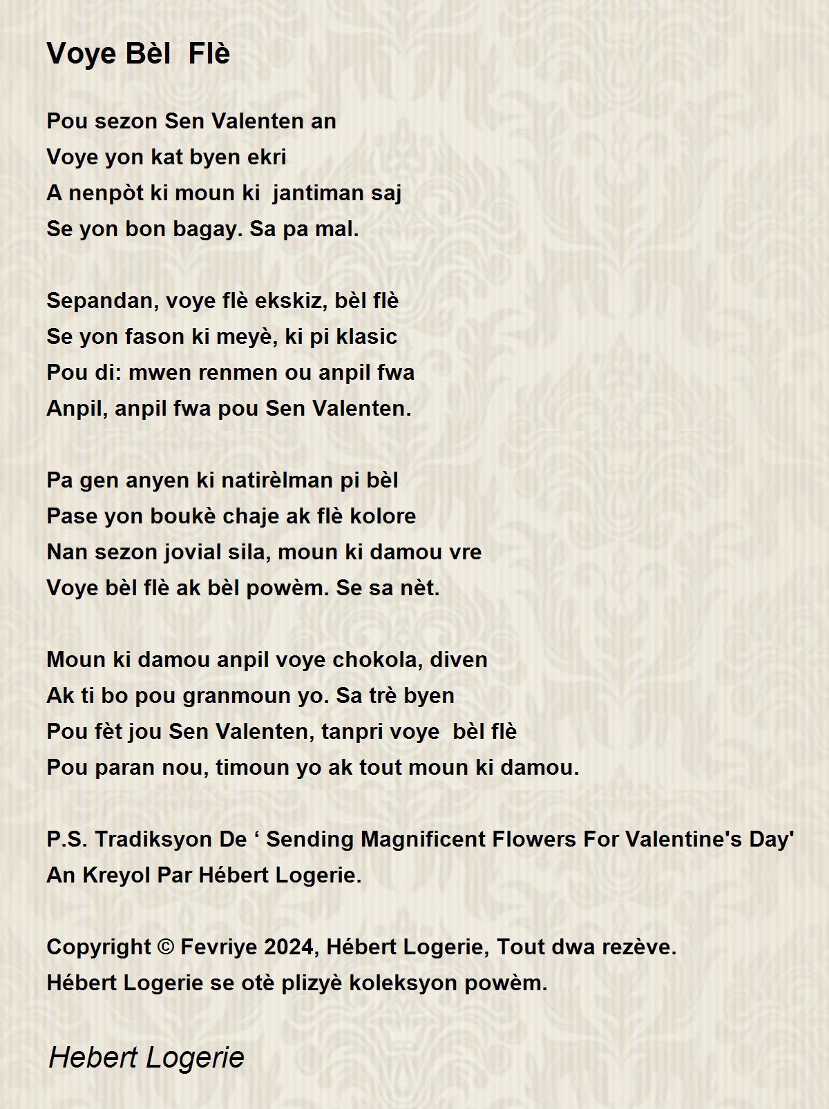 Voye bèl flè ak bèl powèm. Se sa nèt.