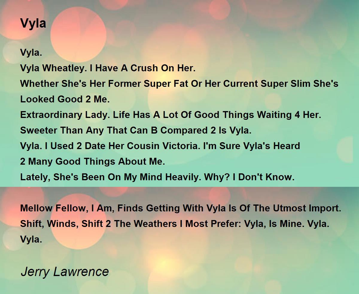 Sweeter Than Any That Can B Compared 2 Is Vyla.