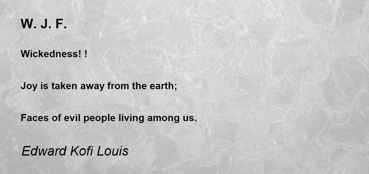 Wickedness! ! Joy is taken away from the earth; Faces of evil people living among us.