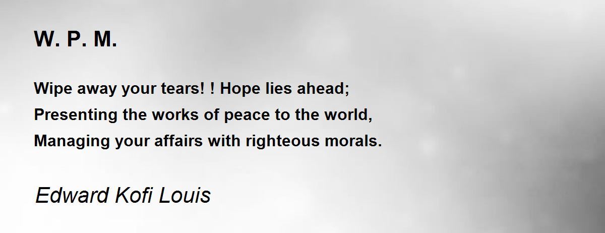 Wipe away your tears! ! Hope lies ahead; Presenting the works of peace to the world, Managing your affairs with righteous morals.