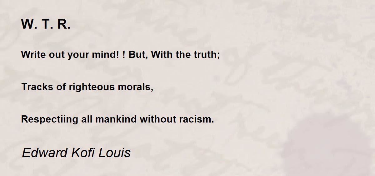 Write out your mind! ! But, With the truth; Tracks of righteous morals, Respectiing all mankind without racism.