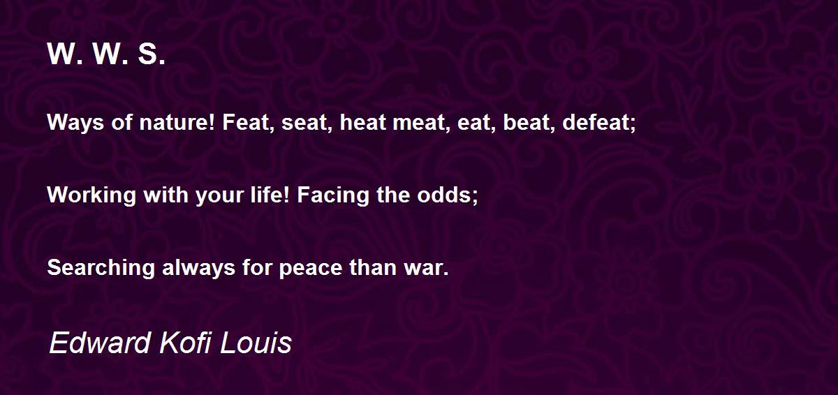 Ways of nature! Feat, seat, heat meat, eat, beat, defeat;