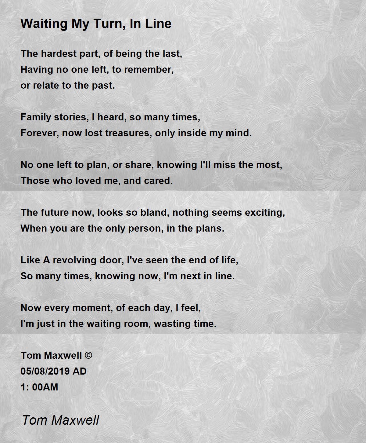 Nice poem. I disagree with the message though. If your predecessor left no history doesnt mean its not there. So instead of loafing in the waiting room go find it and make it easier for those coming after you to now sit in the waiting room reading your work
