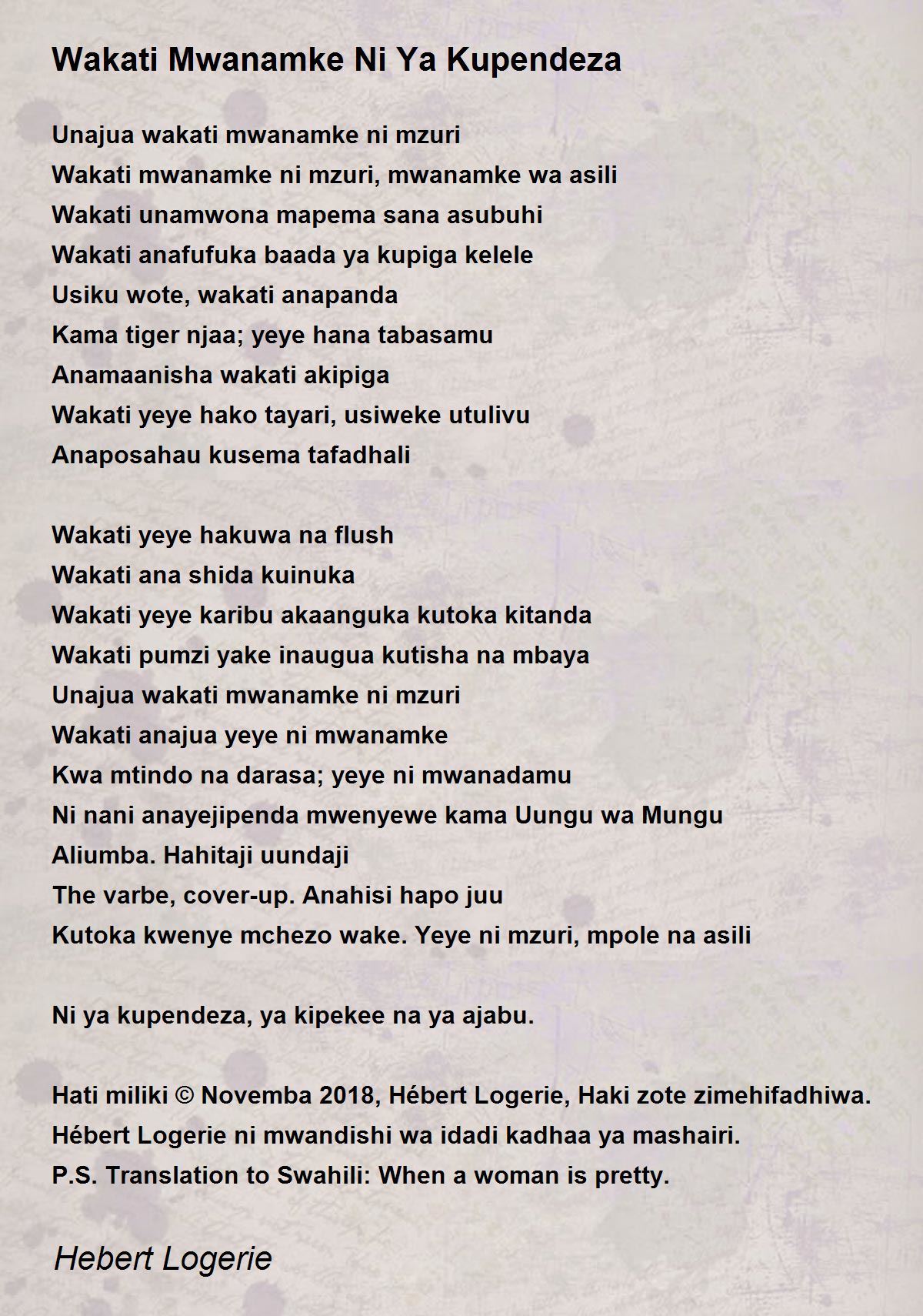 Hati miliki © Novemba 2018, Hébert Logerie, Haki zote zimehifadhiwa.