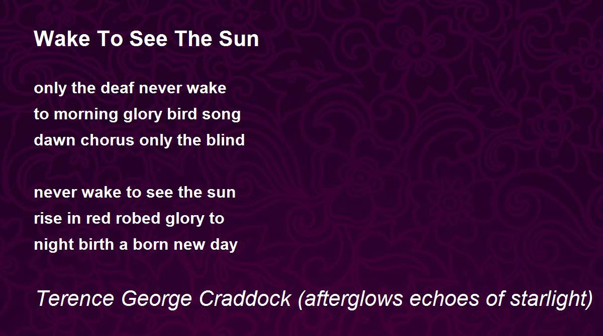 only the deaf never wake to morning glory bird song dawn chorus only the blind never wake to see the sun rise in red robed glory to night birth a born new day /// excellently written; thanks a lot for your dedication they see but do not see perfectly they hear but do not hear absolutely cause they are blind and deaf by heart!