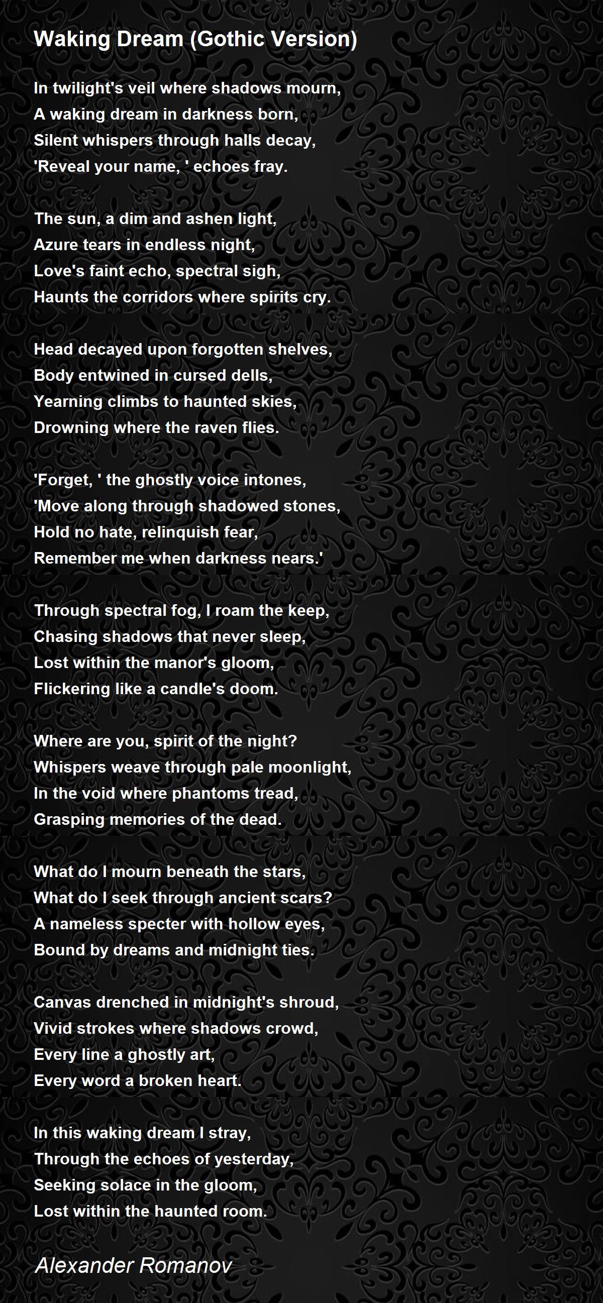 In this waking dream I stray,